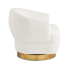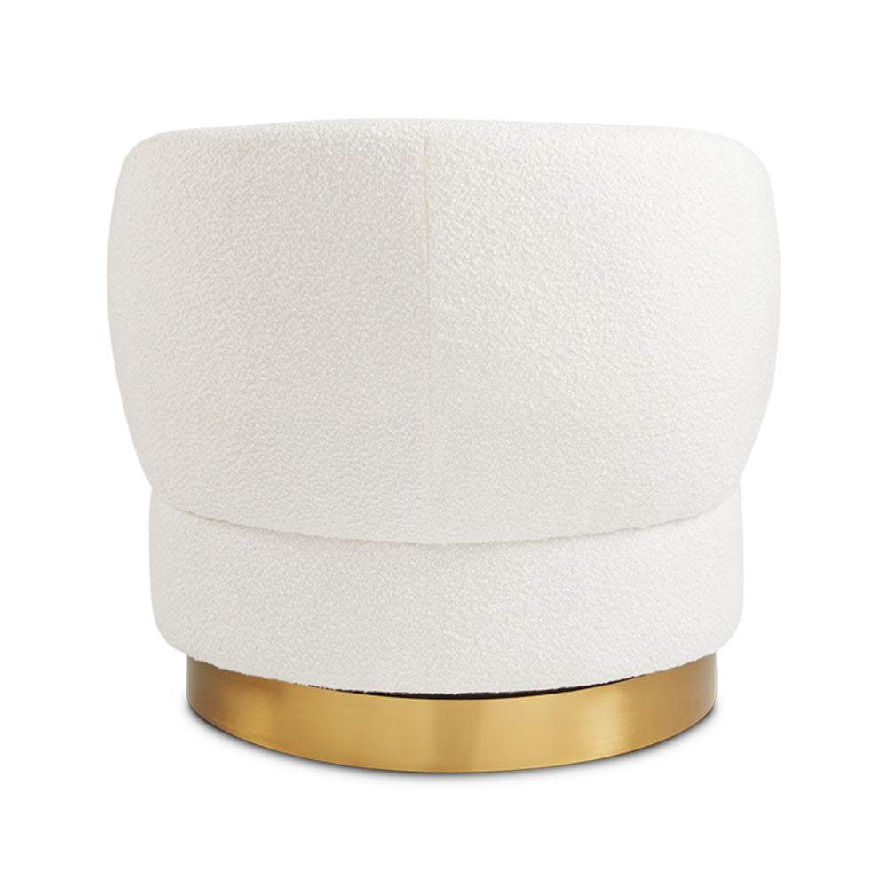 Showstopper warning. Luxe decor takes on a new meaning with the Hana swivel accent chair. Adorned in irresistibly soft fabric and set on a brushed gold swivel base, this is the perfect piece to feature in a lounge, office, or living room. It's petite but spacious frame ensures comfortable seating while not overpowering the space. The swivel base allows for 360-degree motion. You'll never want to leave with the Hana swivel accent chair.