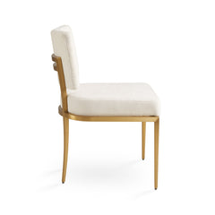 • Olivia Dining Chair: Modern design with luxurious white linen upholstery