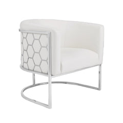Masterfully crafted, the Helmand accent chair is distinguished by its geometric hexagonal laser-cut pattern that can't be missed. Enjoy its stunning appeal from any angle and in any living space. Elevate your living space instantly by featuring it in your home decor.