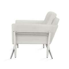 The Madeira accent chair was designed with both comfort and style in mind. Expert upholstery showcases stunning clean lines and comfortable padding. Supported by a unique stainless steel frame and striking crossed legs that seamlessly morph into the frame. A must-have for any living or entertaining needs.