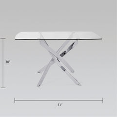 Gather around your centerpiece dining table, the Verity. Get the most out of your dining space and amplify its appeal by featuring the modern contemporary Verity dining table. The rounded tempered glass top and polished stainless steel base make for an effortless and open-concept design.