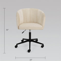 Dressed for success. Add functionality and style to your home office space with the Phoebe office chair. The elegantly designed barrel-back seat rests on top of five casters to help move you around tile or hardwood floors with ease. With a full 360-degree swivel seat, you can spin through the 9-5. Also features a nearly 6-inch vertical height adjustment to make for a comfortable and ergonomic seat.