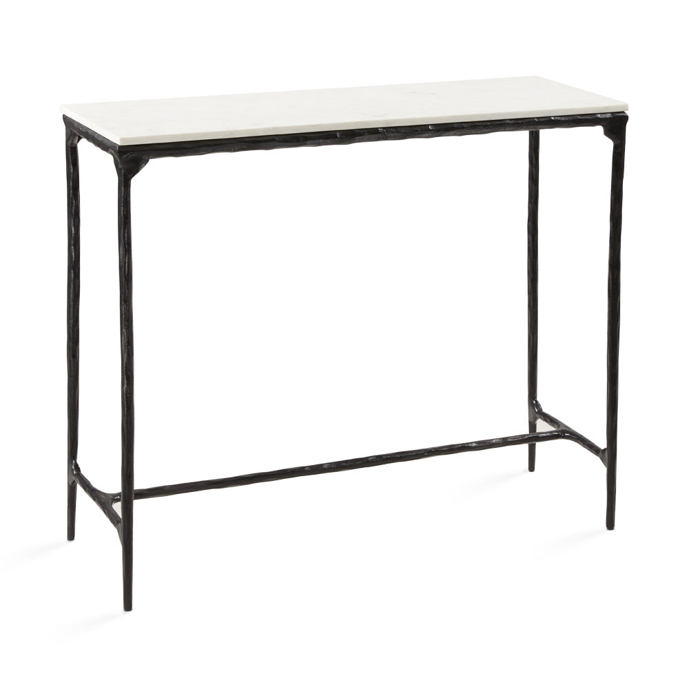 The organically inspired Kali Marble Console Table brings a natural and effortless touch to your home decor, as an entryway piece or to highlight an accent wall. Featuring an exquisite and elongated hammered metal frame that lifts a premium slab marble top. A sustainable way to incorporate earthy elements and modern design with the Kali Marble Console Table.