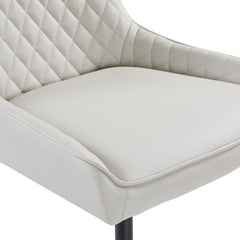 A perfect fit and a great way to add a touch of color. The Endrick black metal dining chair features a modern contemporary set of gracefully contoured back chairs. Classically upholstered with a diamond pattern stitching on the seat and clean piping running along the back. Tapered and slanted legs provide reliable and durable support. Perfectly compliments existing decor and adds a modern flair to any living space.