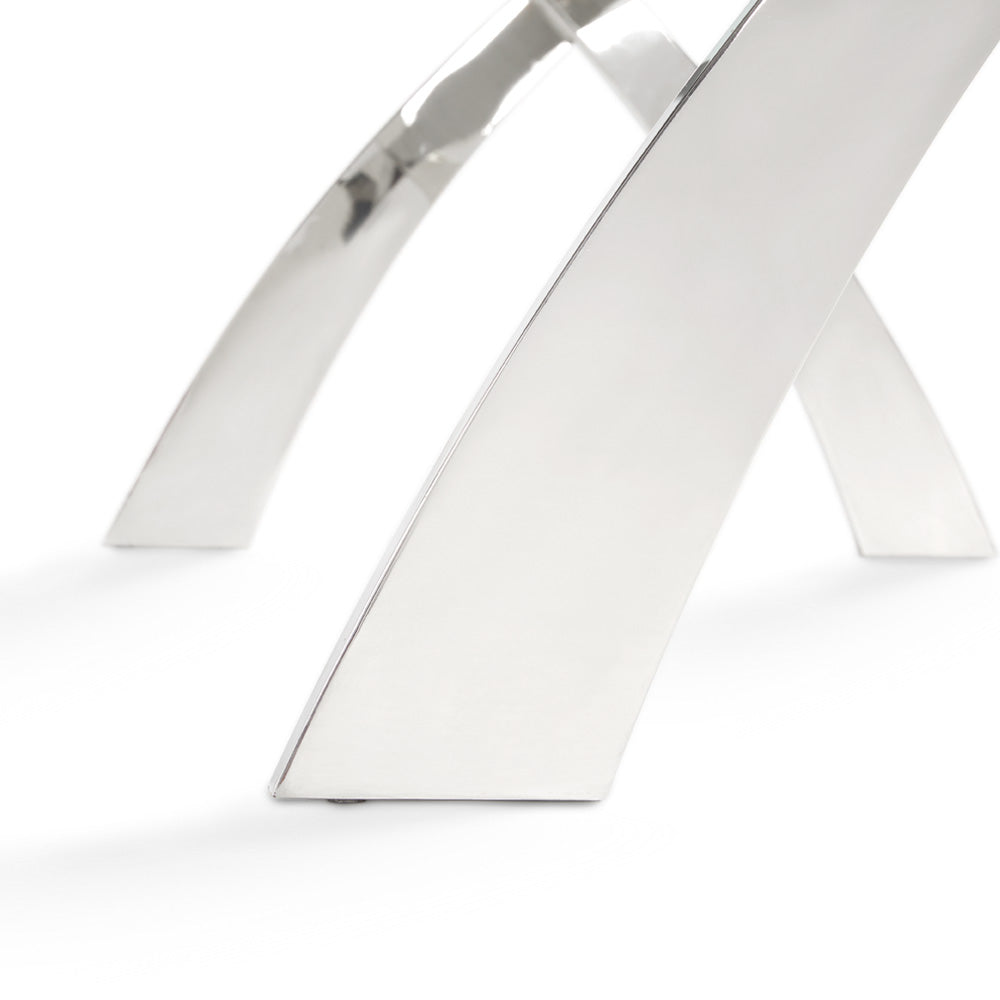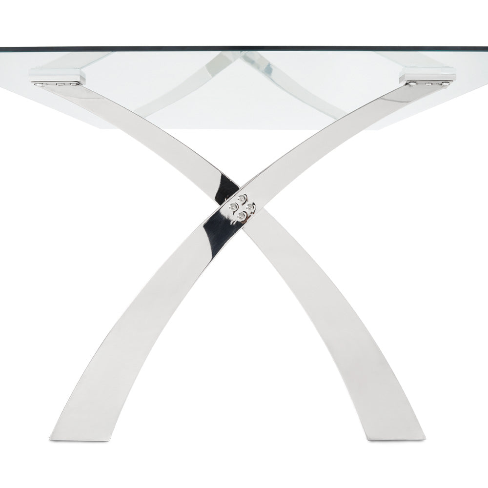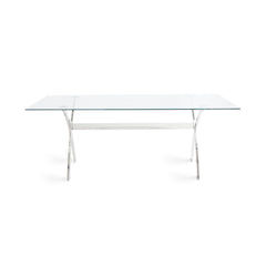 Made of a solid hand-polished stainless steel base and an impressive tempered glass top, the Felix Dining Table combines major design impact with a light and airy feel. Sculptural base and lengthy legs elongate this stunning design for you to include more of your favorite people at the dinner table.
