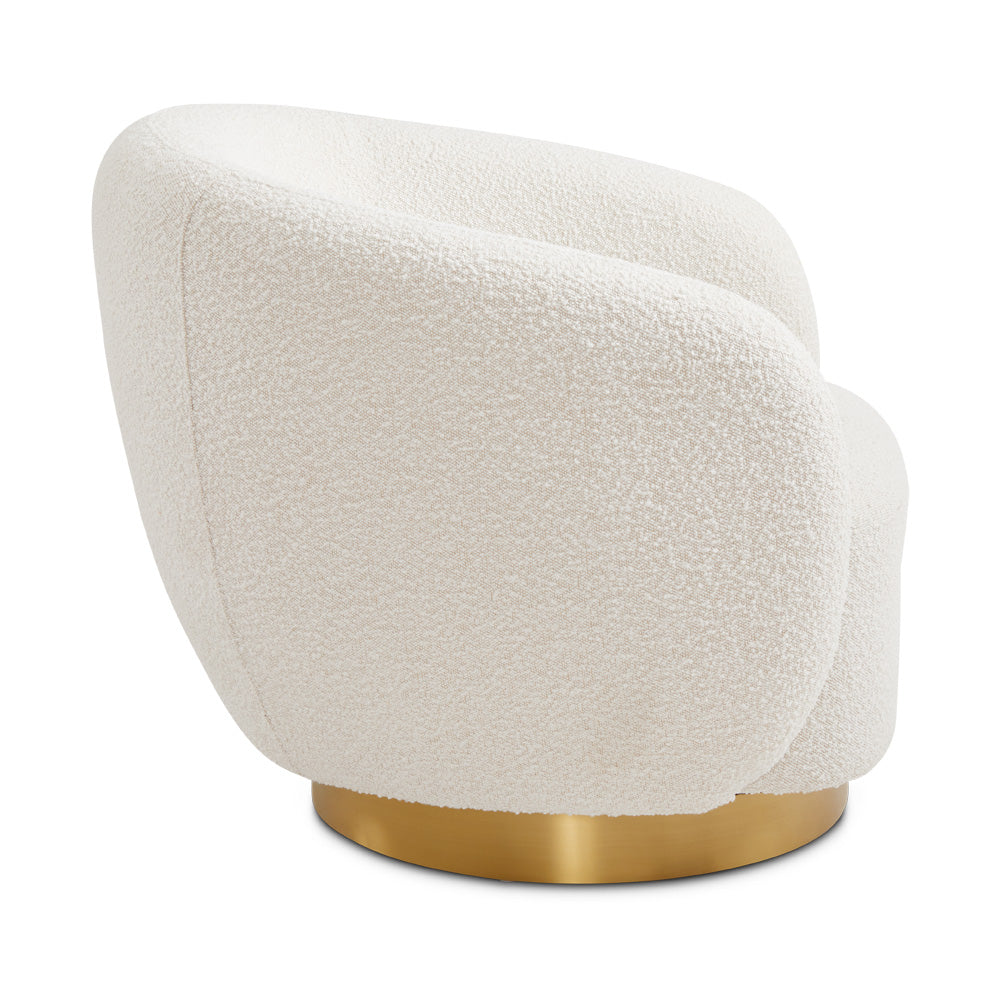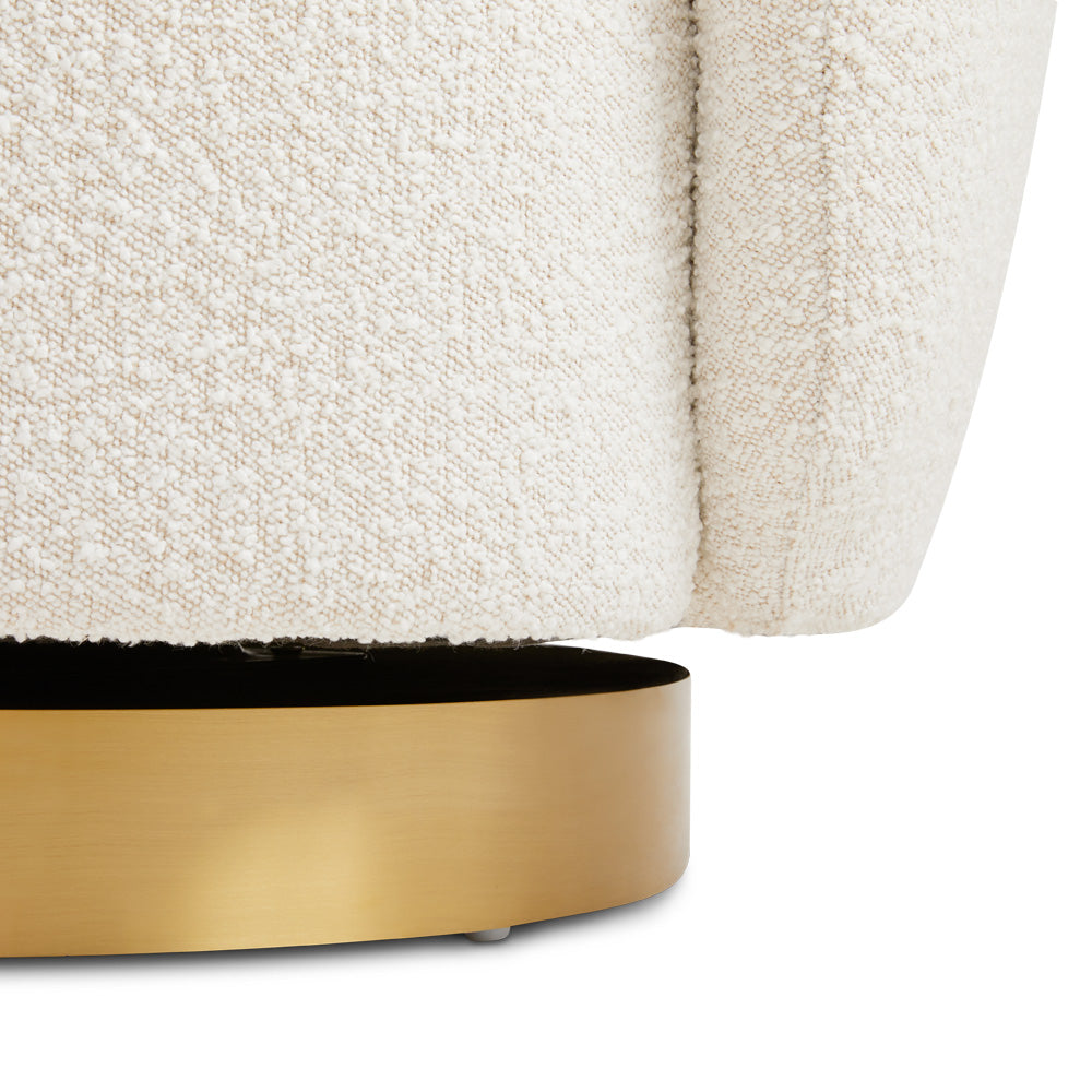 Petite in stature and perfect for cozy corners, the Georgina swivel accent chair is a delightful new addition to feature in your living room decor. Reimage what reading by the fireplace looks like on this modern yet chic silhouette, adorned in a performance ivory boucle. The swivel base allows for 360-degree motion.