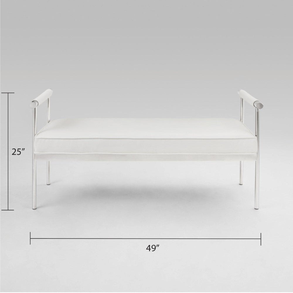 At the intersection of modern meets contemporary, you'll find the Jordan bench. Showcasing polished stainless steel frame and base with round arm supports and legs. A quick and easy solution for additional seating in your home decor or to update any family room, entryway, or bedroom. Quality craftsmanship has never been this stylish.