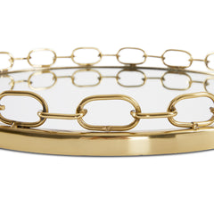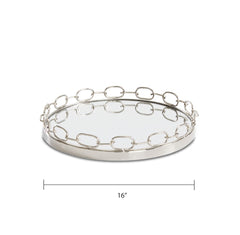 Designed for endless uses, the Lilou chain link tray serves many purposes. Use it to carry snacks, drinks, or as a display to your home decor. Chain link loops create an infinity effect, with a mirrored base.