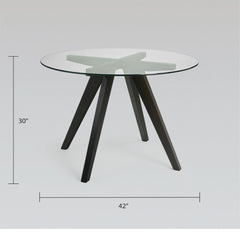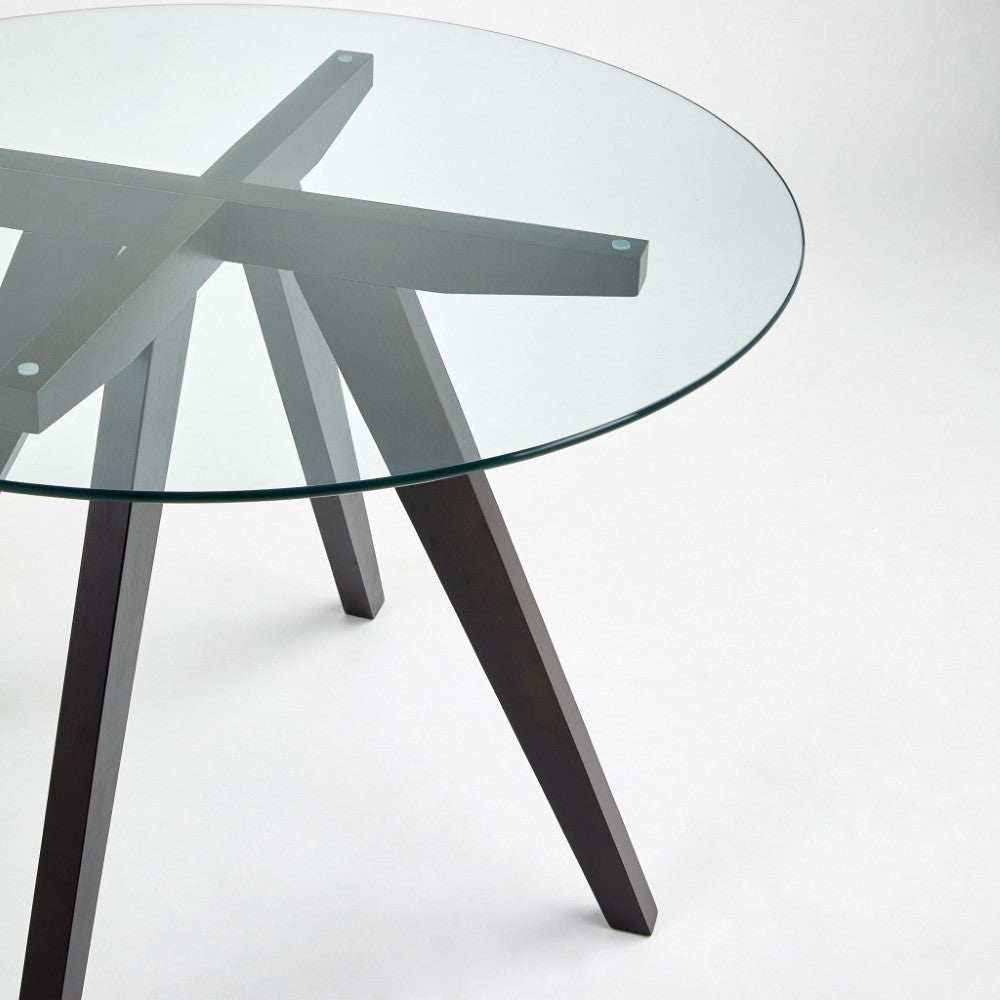 More than just a place to sit, the Ophelia dining table combines an effortless and simplistic design that immediately draws attention to your dining spaces. With a solid wood base and tempered glass top, it will be sure to handle dinner conversations and any of life's surprises. The round glass top lays bare the uniquely designed wood base for an exposed and industrial look. Perfectly suited for small and loft spaces.