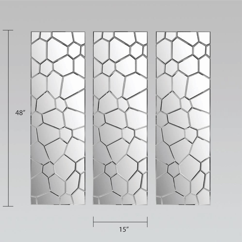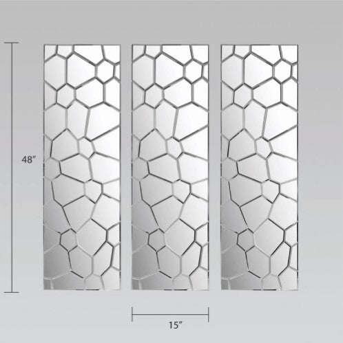 Stop and stare. The one-of-a-kind Parana wall mirror uses the same abstract pattern as featured in our Parana furniture series. Fragmented glass pieces morph together to form a beautifully distinct pattern and artisanally made jigsaw puzzle. The intricate design was inspired by the water-cube design of the 2008 Olympics. Feature it in your home decor and take home the gold. Sold individually, per piece.