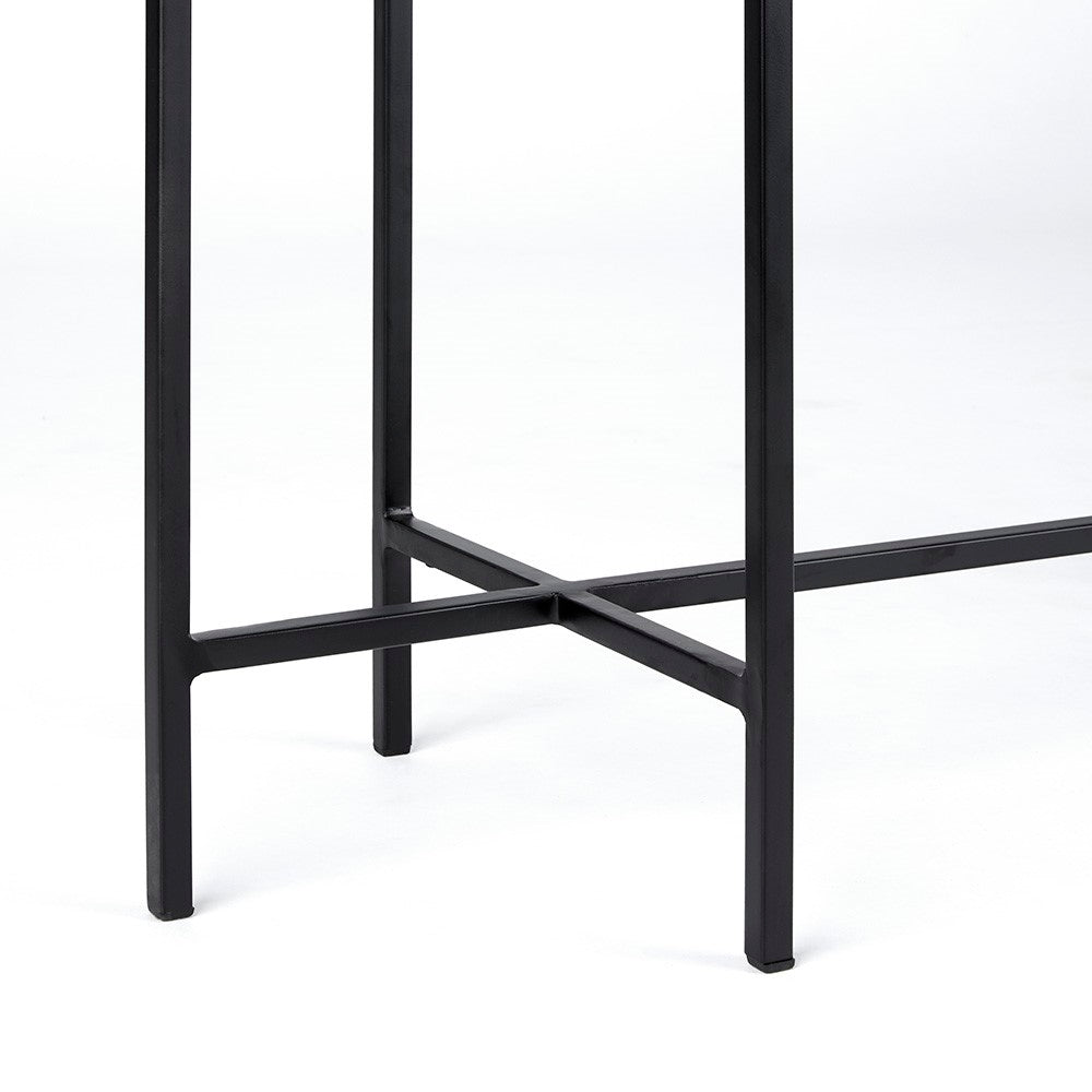Light on its feet, sturdy in shape. The Tilly black marble console table is an accent table that can't go wrong. The crisp black metal frame supports an impressive slab of real marble. Simplicity in design, yet impressively ideal to bind together your home decor. With endless uses, the Tilly console table proves to be an extremely versatile piece. The Tilly collection includes coffee, end, and console tables with an array of finishings. Each piece, from the frame to the marble, is artisanally crafted by hand.