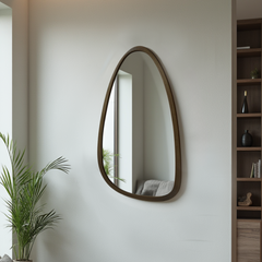 Where geometric intrigue meets organic warmth. Featuring a sculptural, rounded-triangle silhouette, Zara offers a refreshing take on traditional wall mirrors. Framed in a rich walnut-toned wood, it brings depth, texture, and a grounded elegance to any space. With a form that is both playful and refined, Zara is the perfect accent for interiors that celebrate distinctive shapes, natural materials, and harmonious design.